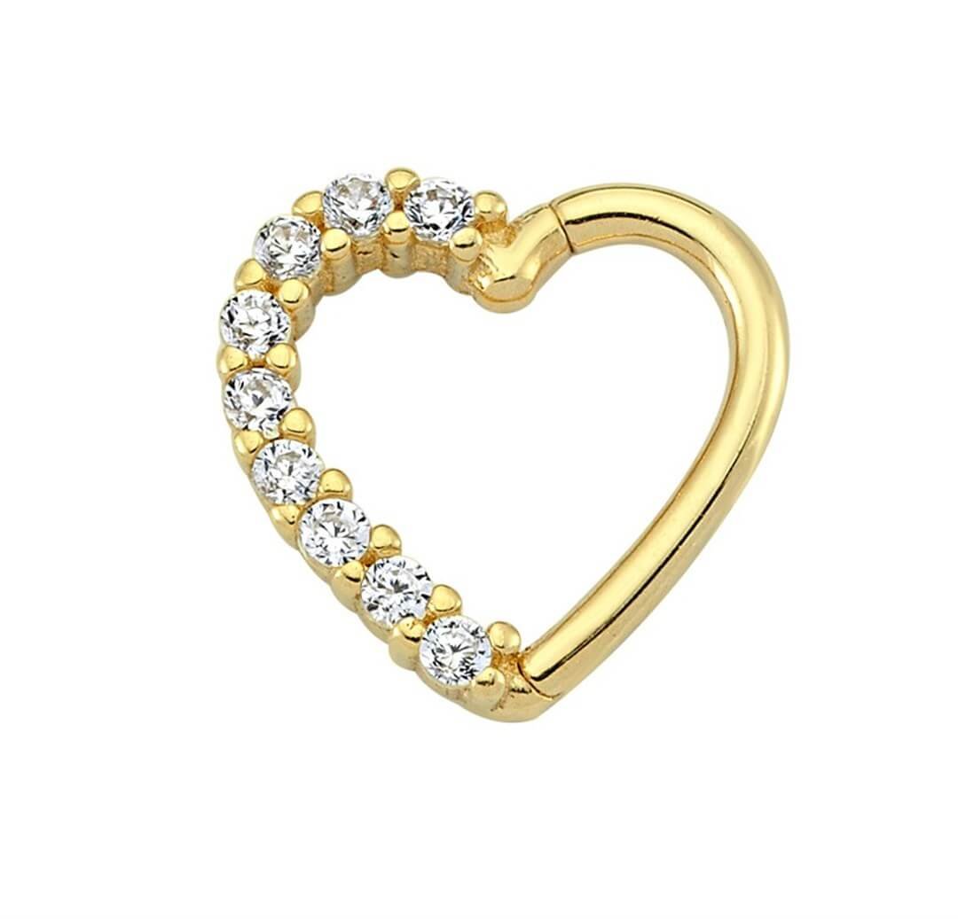 14 ayar altın tek dokuz taşlı Kalp dizayn Tragus Helix Piercing