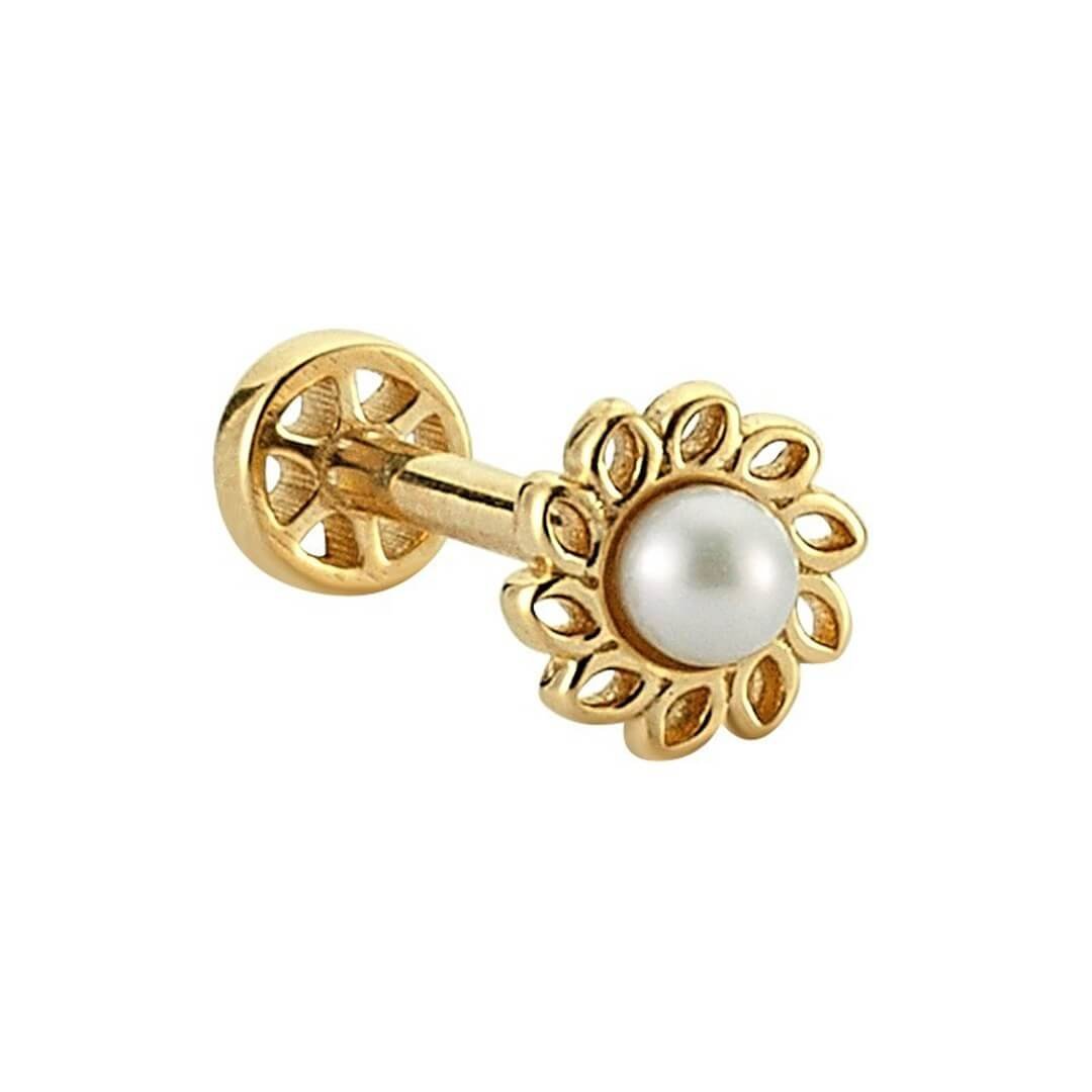 Tek inci ve yaprak motif kenarlı 14 ayar altın Papatya Tragus Piercing İç Bar Uzunluğu: 9 mm