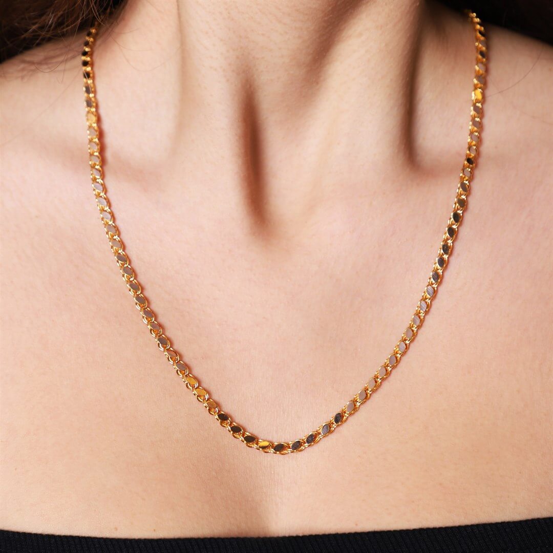 Son dönemlerin en çok tercih edilen kalın zincir modellerinden, 5 mm kalınlığında 60 cm uzunlukta 14 ayar sarı altın Pullu Zincir Kolye Farklı uzunluk talepleriniz için bizlerle iletişime geçebilirsiniz.