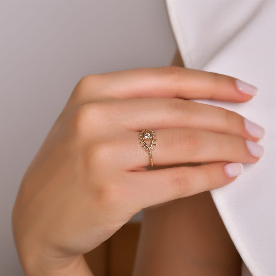Yuvarlak kesim Zirkon Taşlı Kirpik Göz Yüzük 14 ayar altın yüzük son dönemin en çok tercih edilen tasarımlarından. Beyaz zirkonia taşlı, Sarı, rose ve beyaz altın seçenekleri bulunmaktadır.