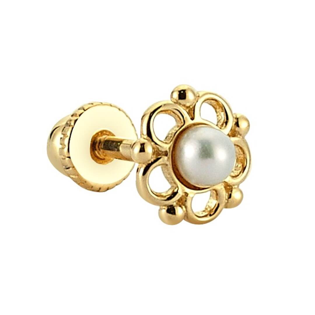 Helix Altın Piercing – İnci ve Mini Top Detaylı Çiçek (PGP0385)