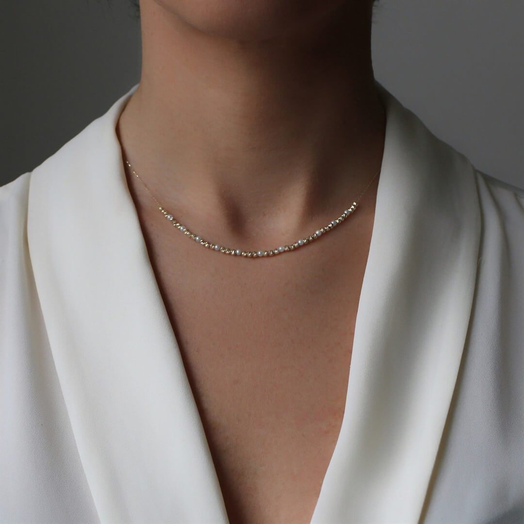 2 mm inci ve top sıralı 45 cm (40+ 5 cm uzatma) uzunlukta, 14 ayar altın zarif - şık İnci kolye