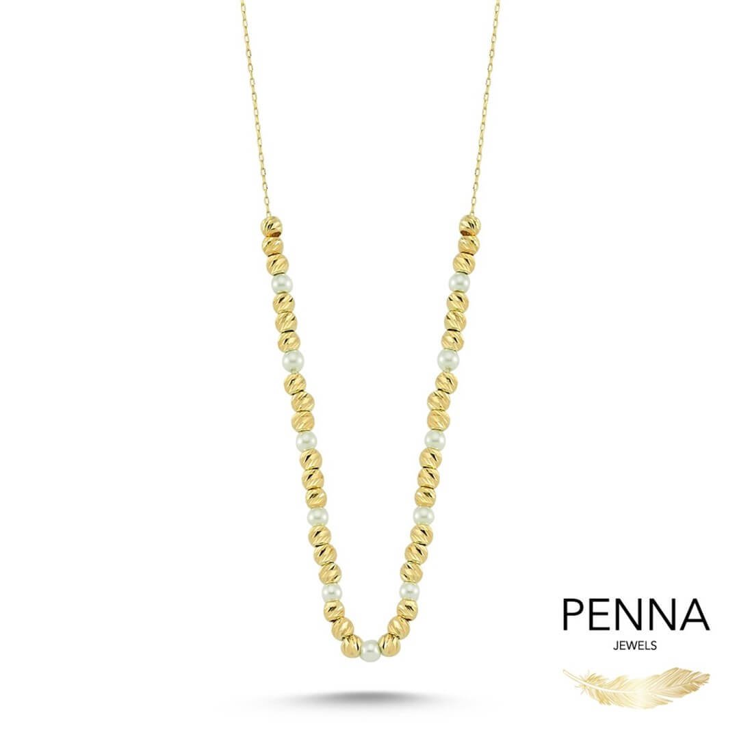 İnci ve Top Sıralı Altın Kolye (PGN0205)