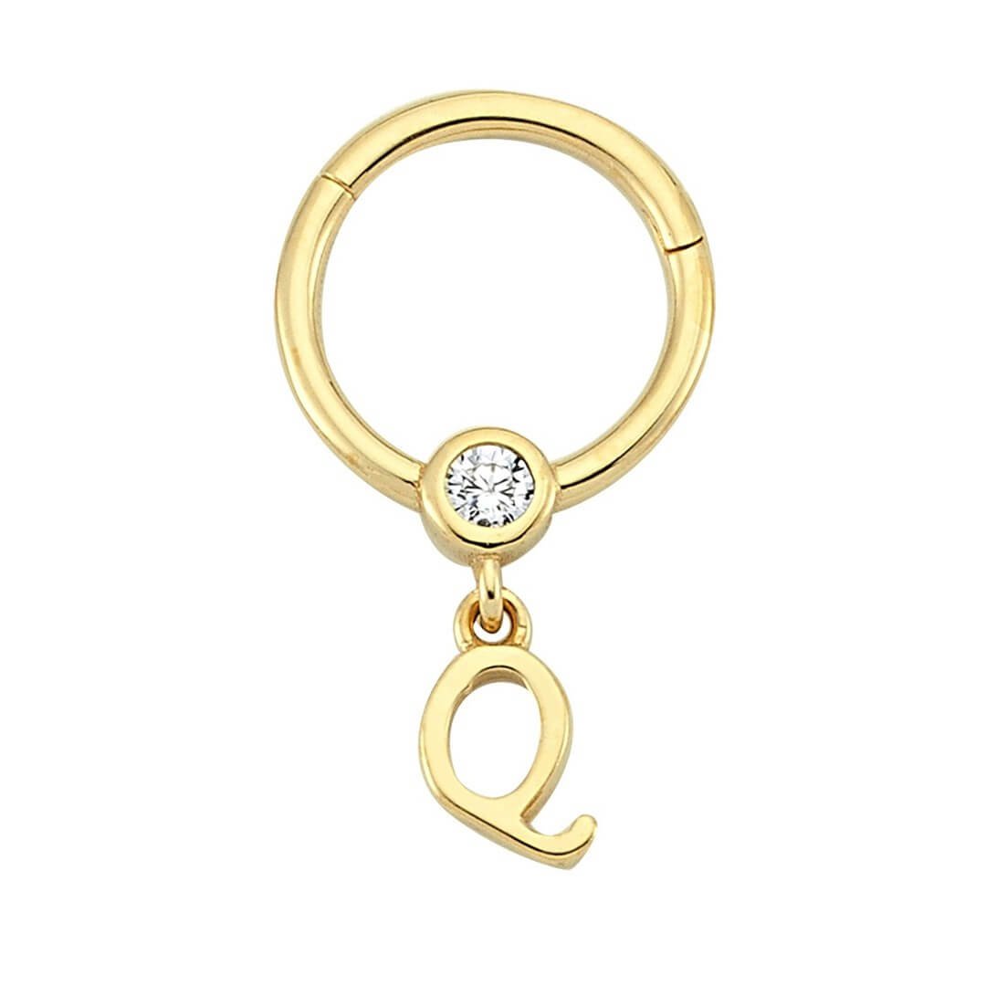Pırlantalı Altın Halka Piercing – Harf Sallantılı – Q (PGP0347)