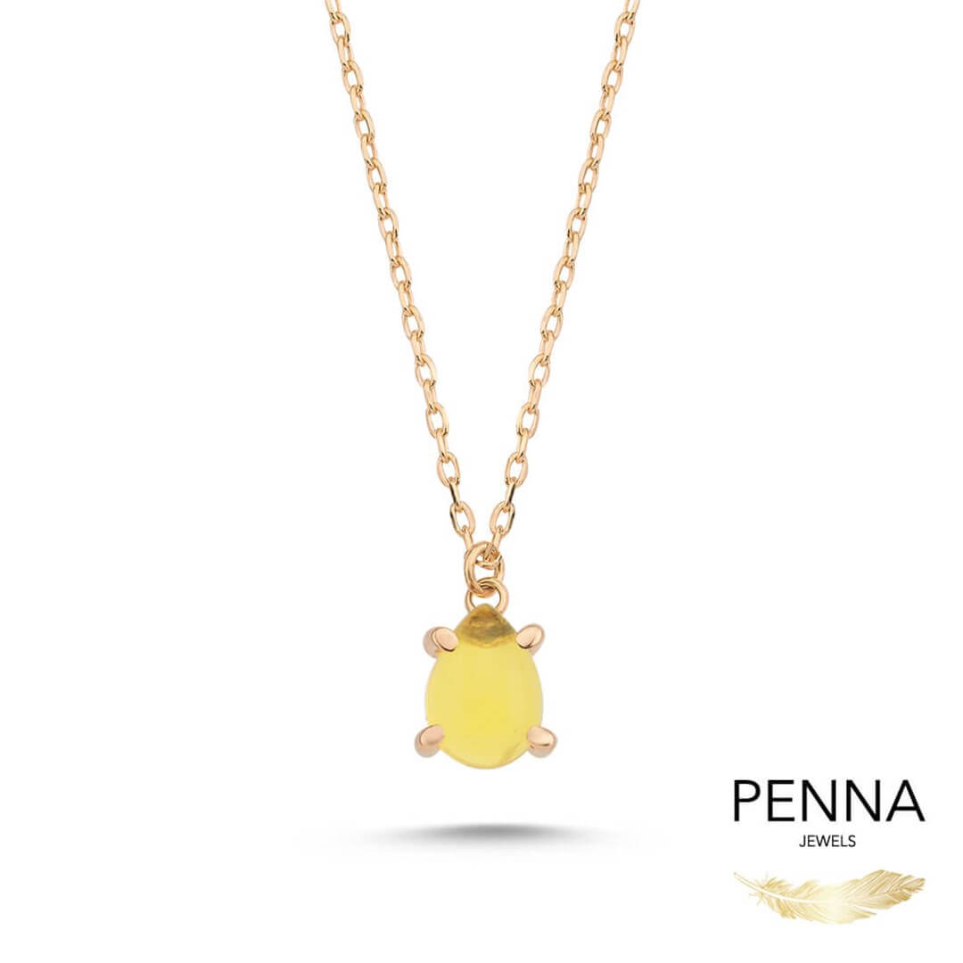 Sarı tonunun en güzel hali Sarı Sitrin taşının sakinleştirici enerjisi ile14 ayar altın Alice Kolye