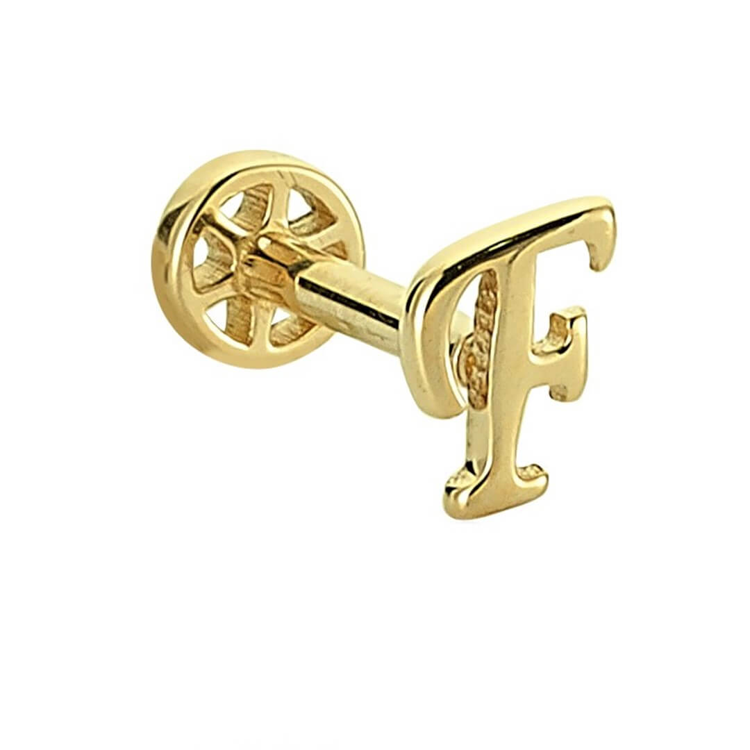 Tragus Altın Piercing – F Harfi (PGP0234)