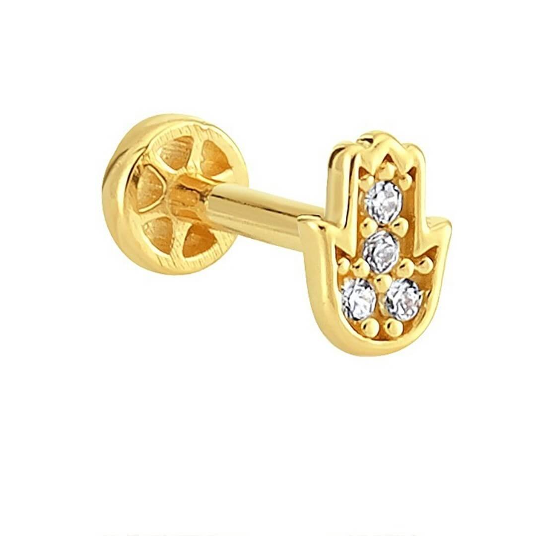 Tragus Altın Piercing – Fatima Eli Hamsa (PGP0279)