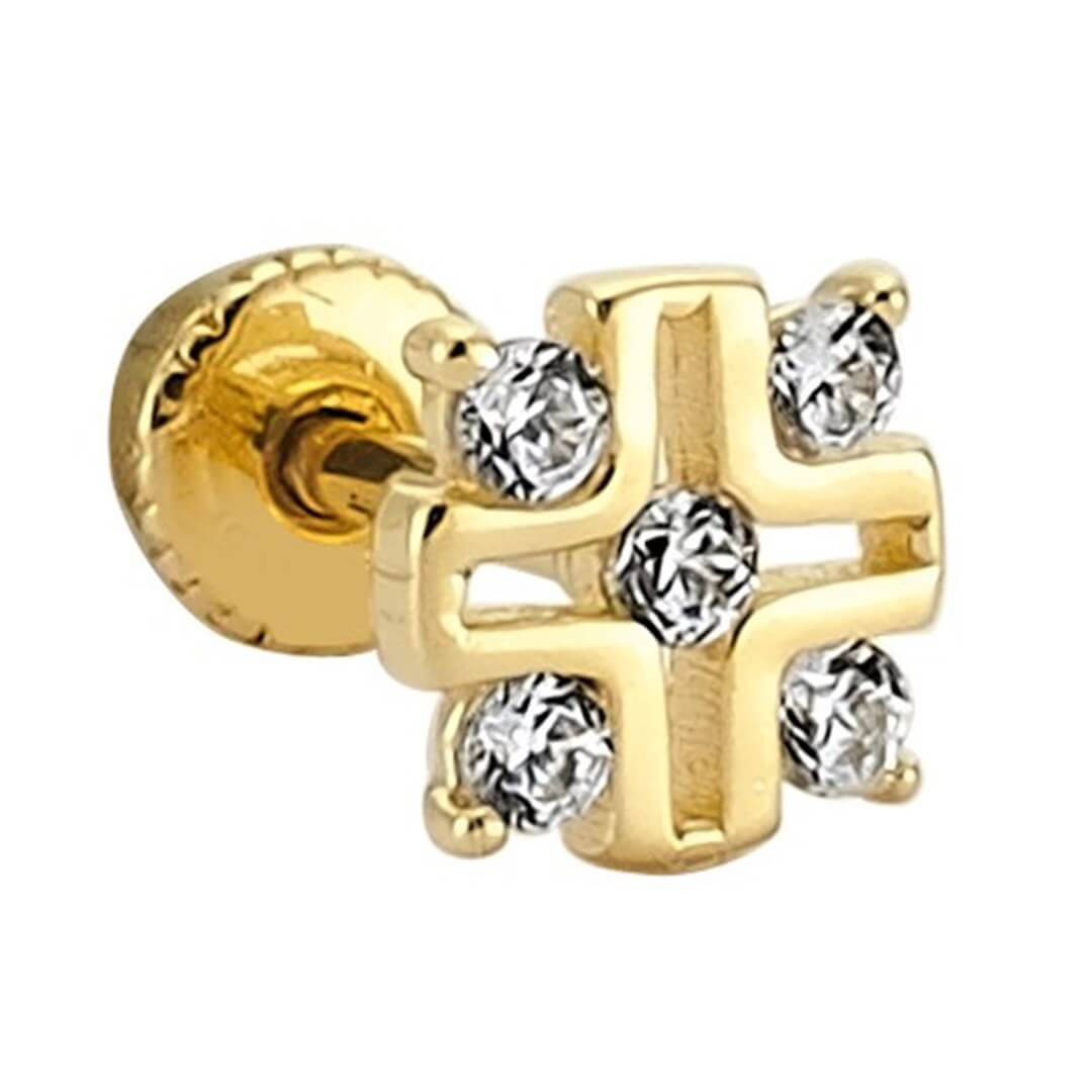 Tragus Helix Altın Piercing – Beş Taşlı Artı (PGP0188)
