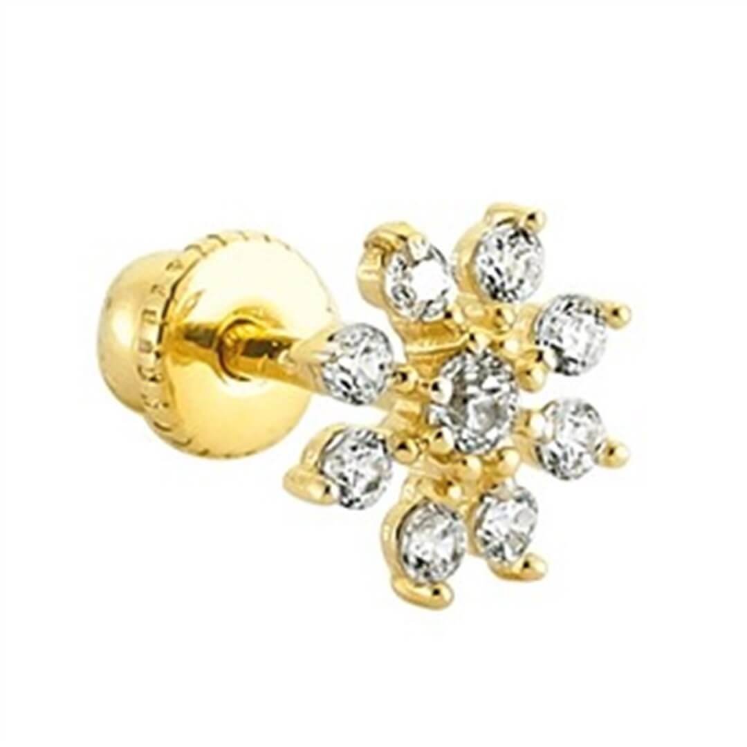 Tragus Helix Altın Piercing – Taşlı Kar Tanesi (PGP0208)