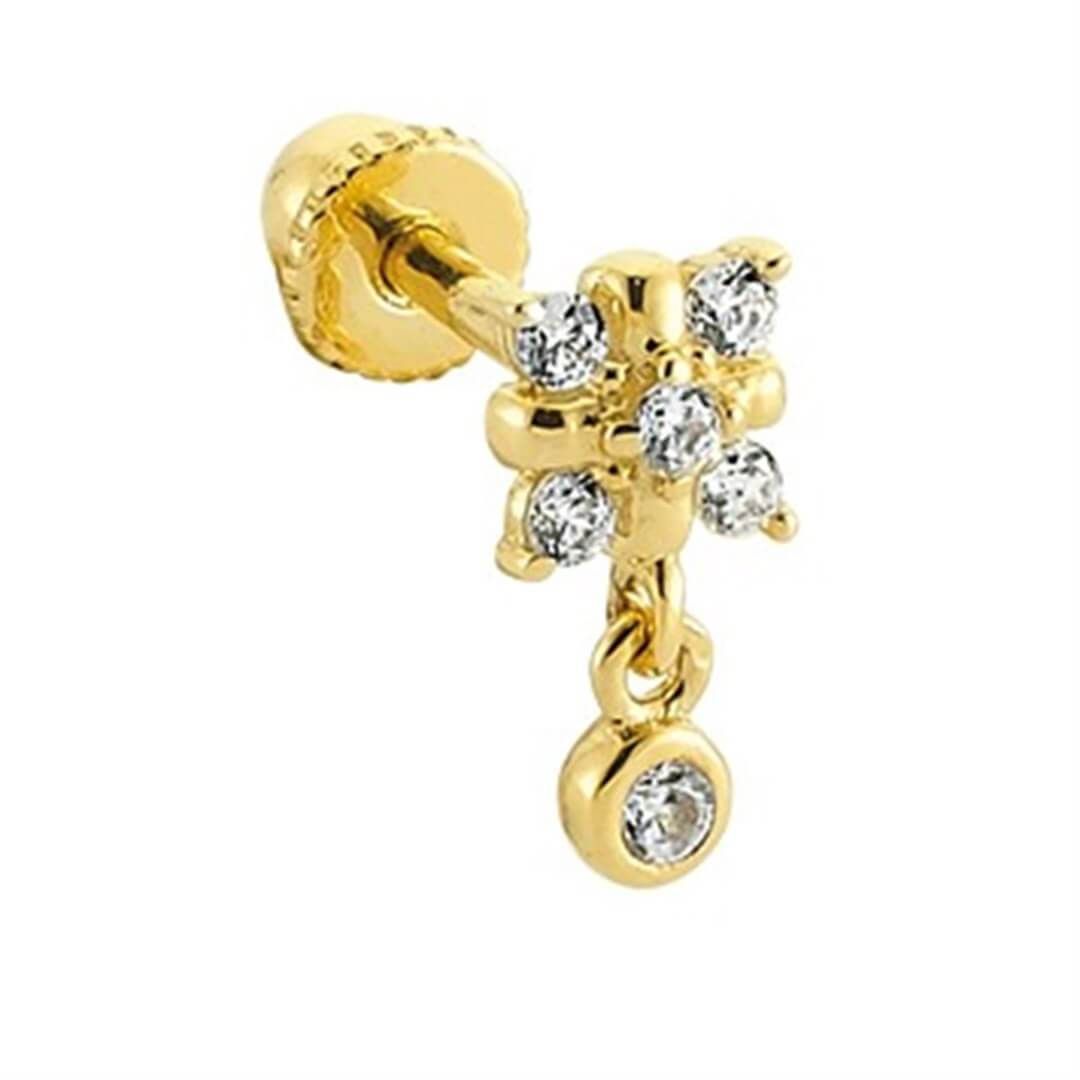 Tragus Helix Altın Piercing – Taşlı Sallantılı Kare Çiçek (PGP0211)