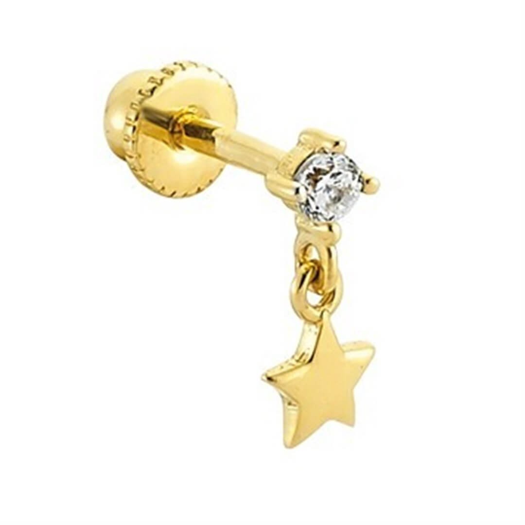 Yıldız Sallantılı Mini Tek Taş Altın Piercing (PGP0148)
