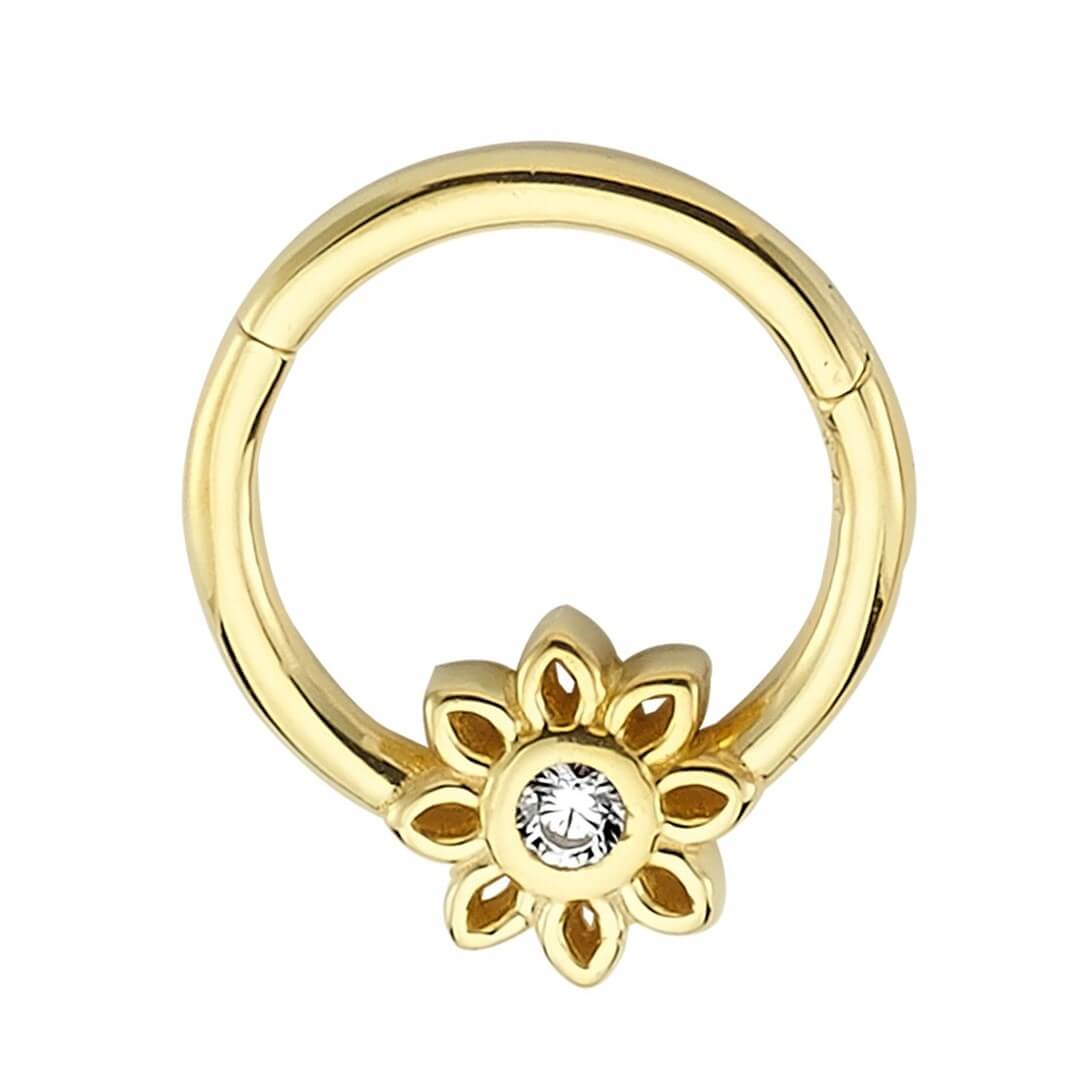 Halka Altın Piercing – Tek Taşlı Çiçek (PGP0158)