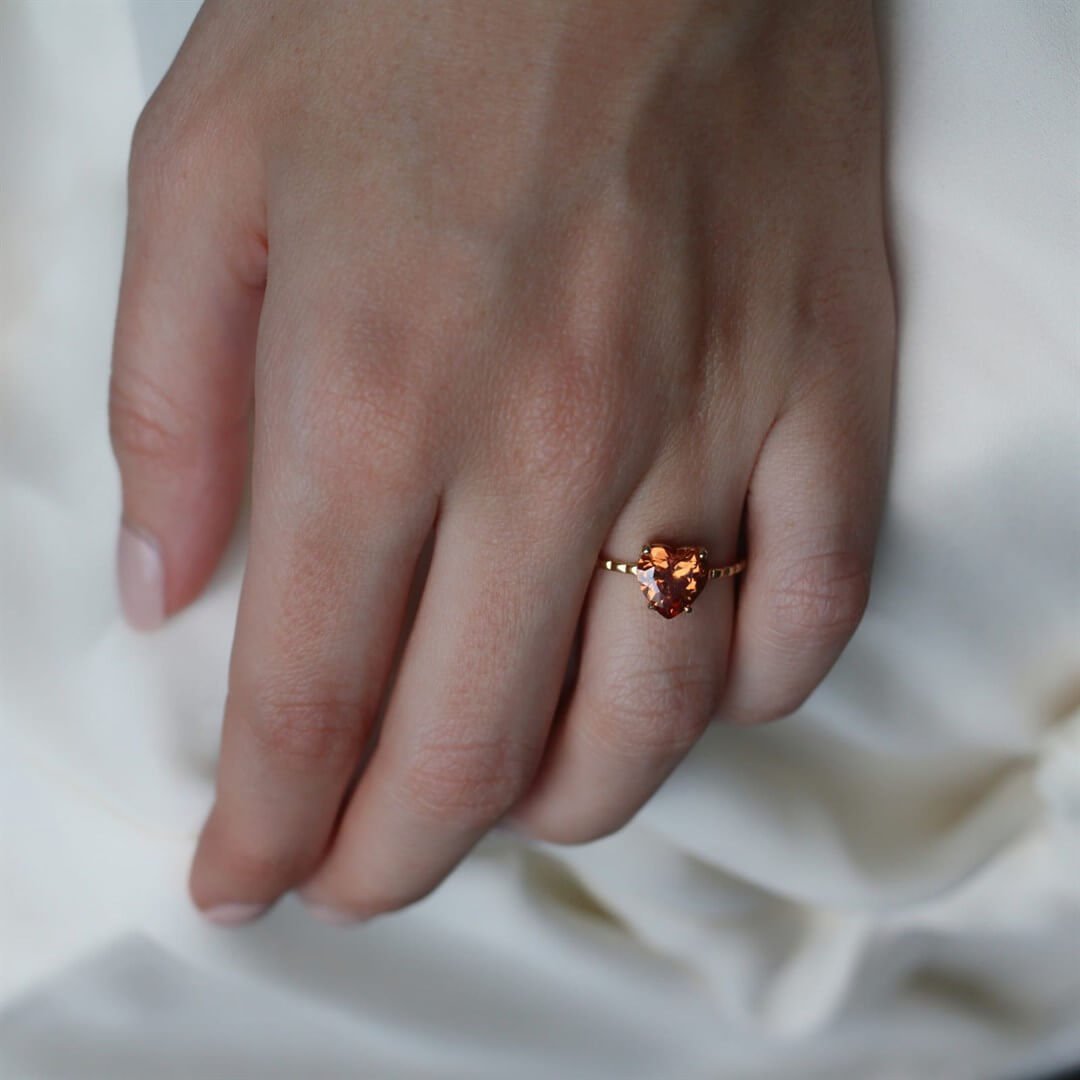 Kalp Kesim Altın Yüzük Sitrin Taşlı 14 ayar. Sarı, rose ve beyaz altın seçenekleriyle....
