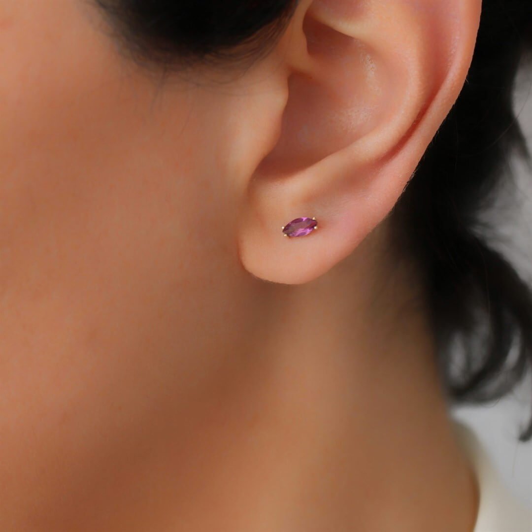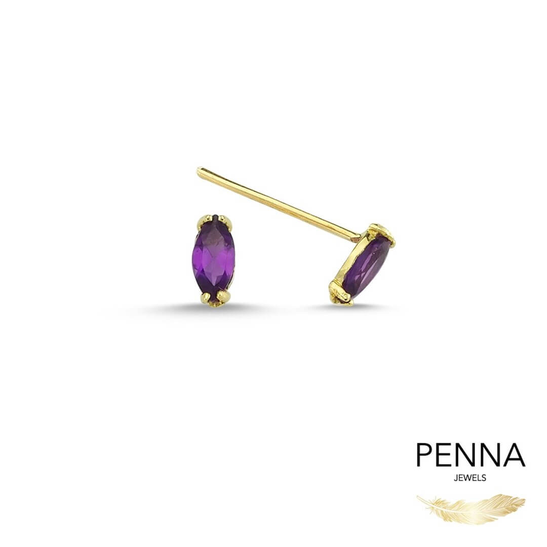 Özel Markiz Kesim 6x3 mm Ametist Taşlı 14 Ayar Altın Stud Küpe. Sarı, rose ve beyaz altın seçenekleriyle..