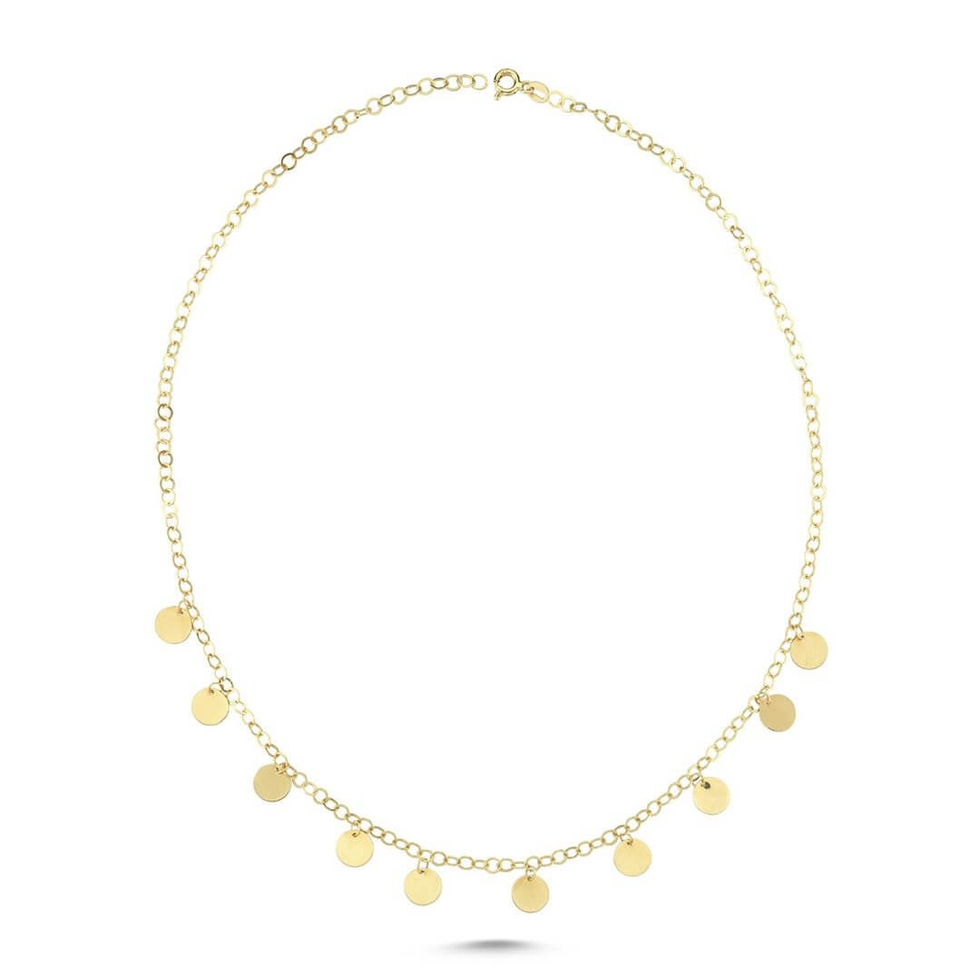 7 mm Plaka Sallantılı 14 Ayar Altın Kolye