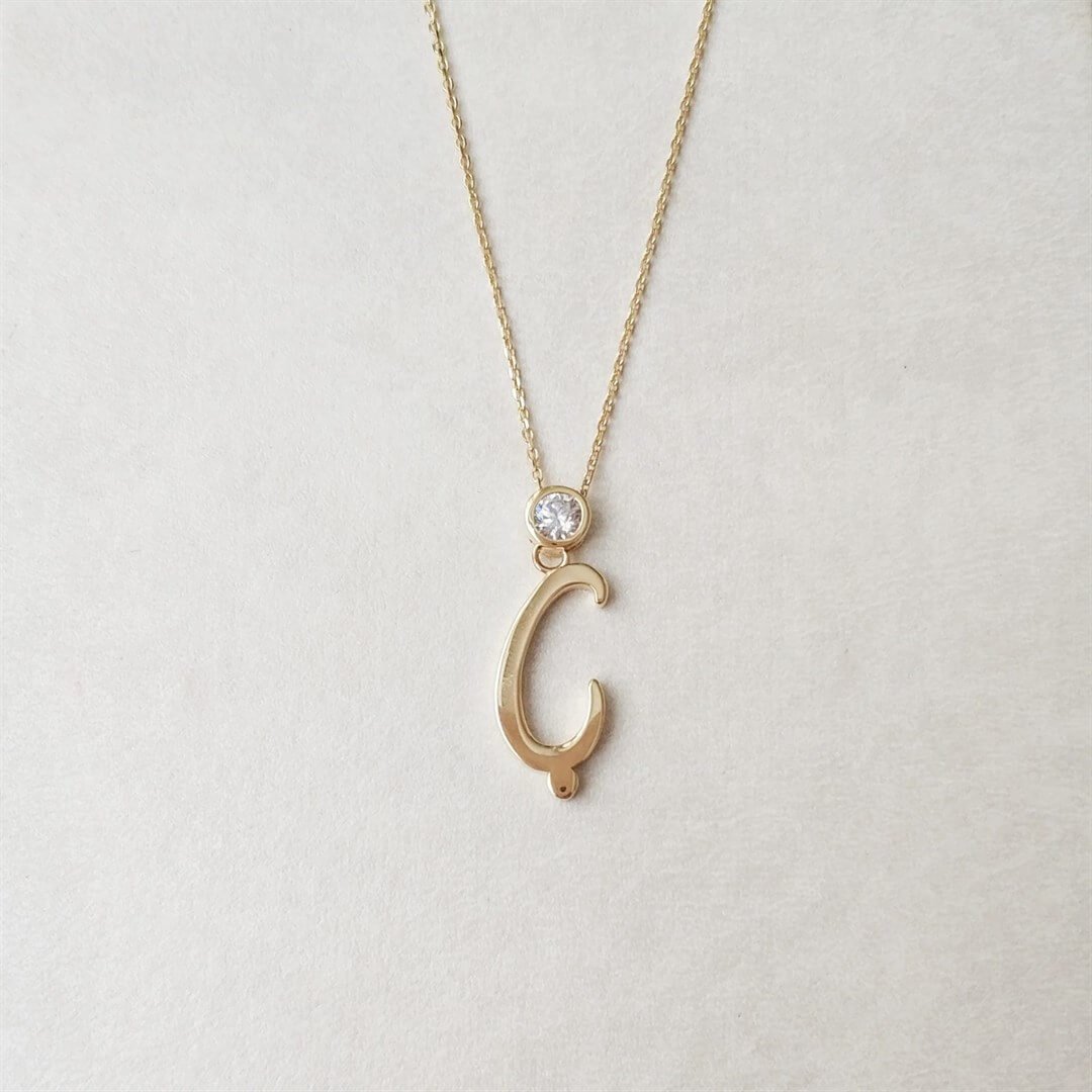 Tek Taş Harf Altın Kolye – Persona Ç Harfi (PGN0217)