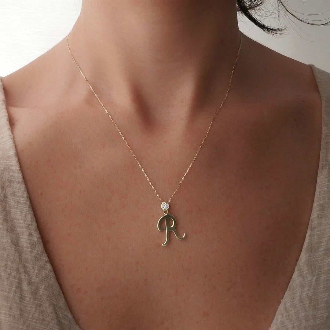 Tek Taş Harf Altın Kolye – Persona R Harfi (PGN0213)
