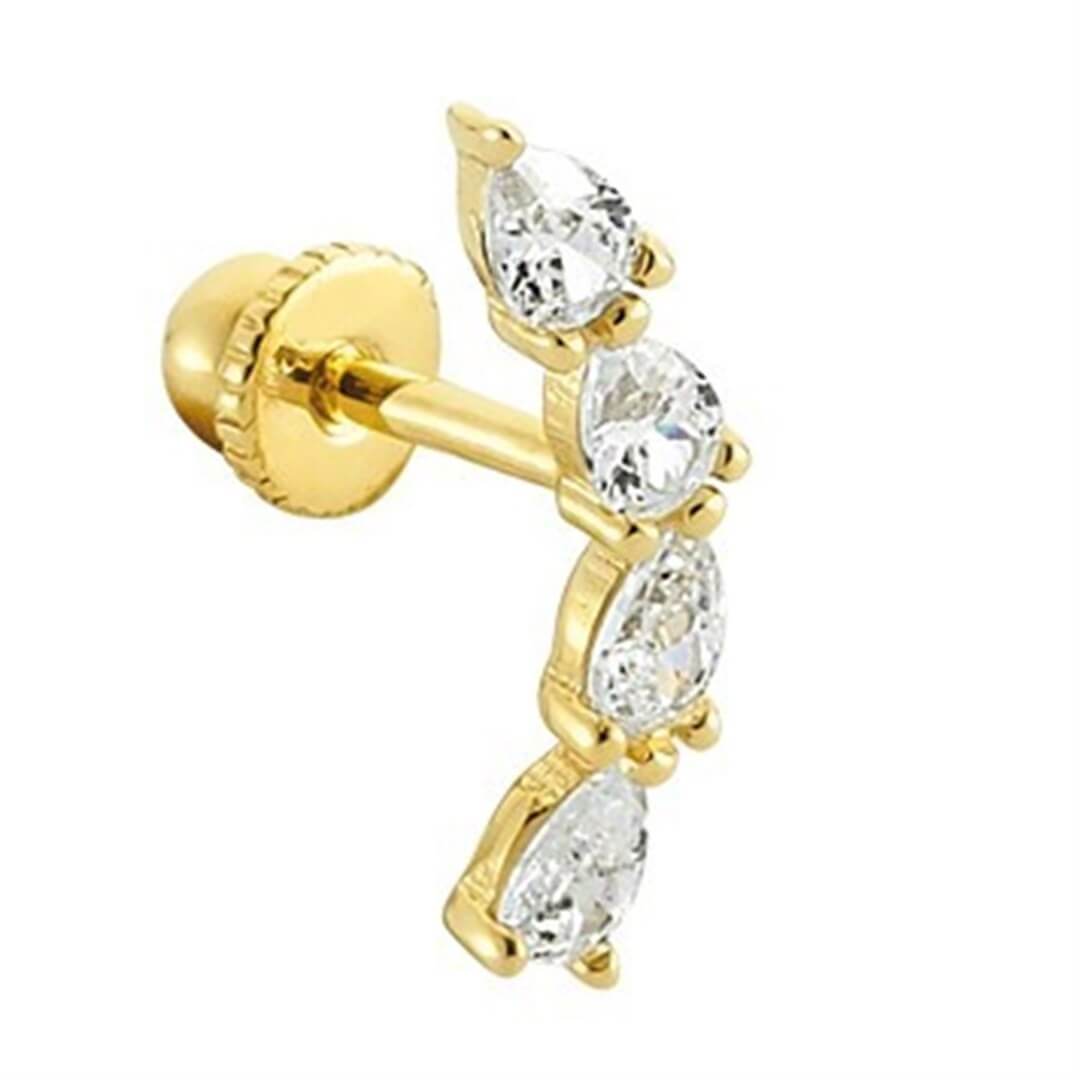 Tragus Helix Altın Piercing – Dört Taşlı Damla (PGP0193)